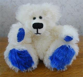 ![]() Caesar (Miri hat ihm den Namen gegeben) besteht aus weiß/schwarzem Mohair und hat blaue Cashmir-Sohlen & Tatzen. Er ist 28cm groß Bevor Yvonne (meine Große) ihn zu Ostern bekam, hab ich ihm noch eine Krawatte genäht ;-) |